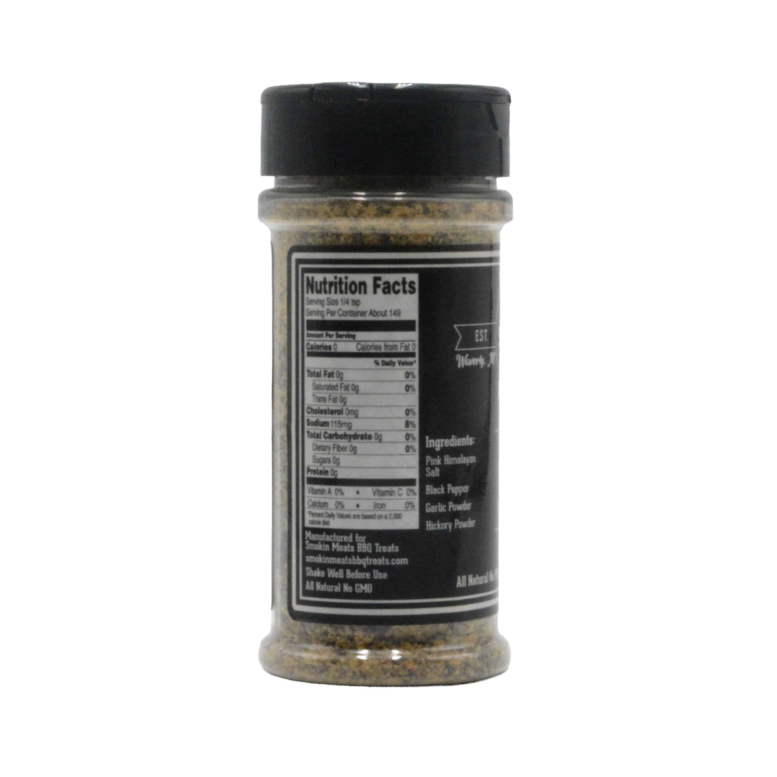 Pink Himalayan Salt, Black Pepper, Garlic Powder, Hickory Powder